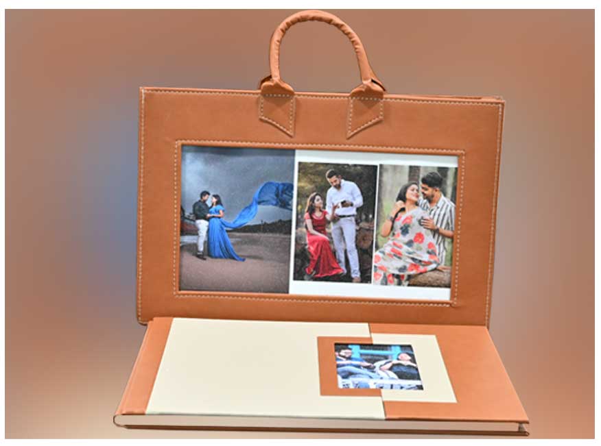 Personalized to make every delivery special. The album cover and box feature UV-printed couple names, while the matching bag carries your company logo, adding a touch of class and brand presence.