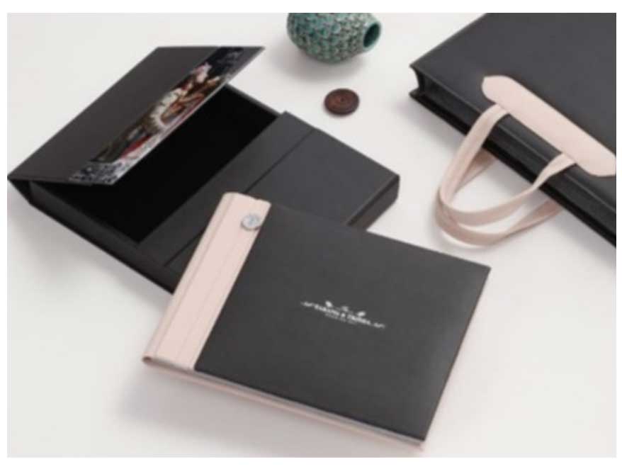 Personalized to make every delivery special. The album cover and box feature UV-printed couple names, while the matching bag carries your company logo, adding a touch of class and brand presence.